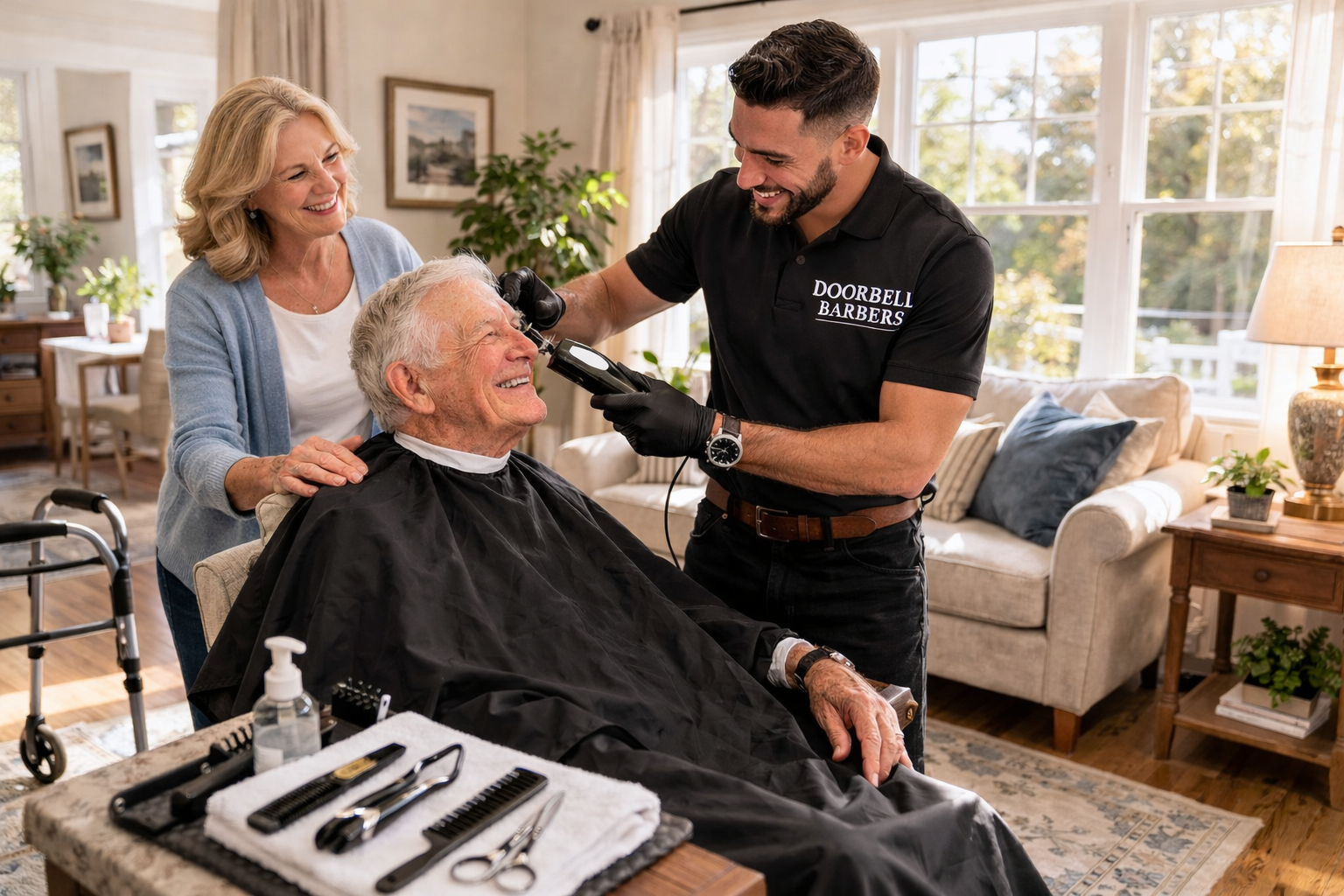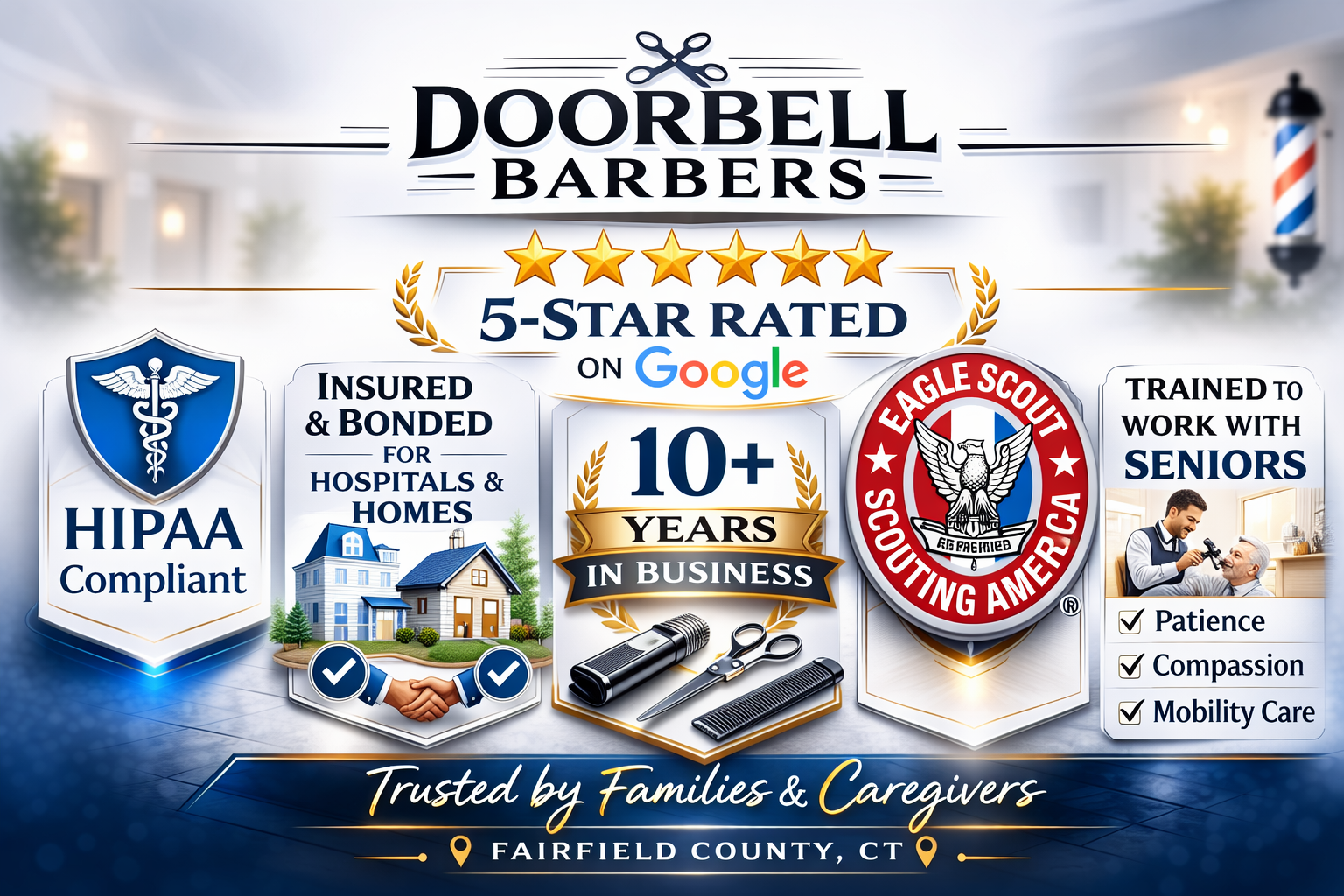At Doorbell Barbers, we provide professional in-home haircut services throughout Fairfield County, Connecticut, with a mission-driven focus on seniors and individuals living with medical challenges like Parkinson’s.